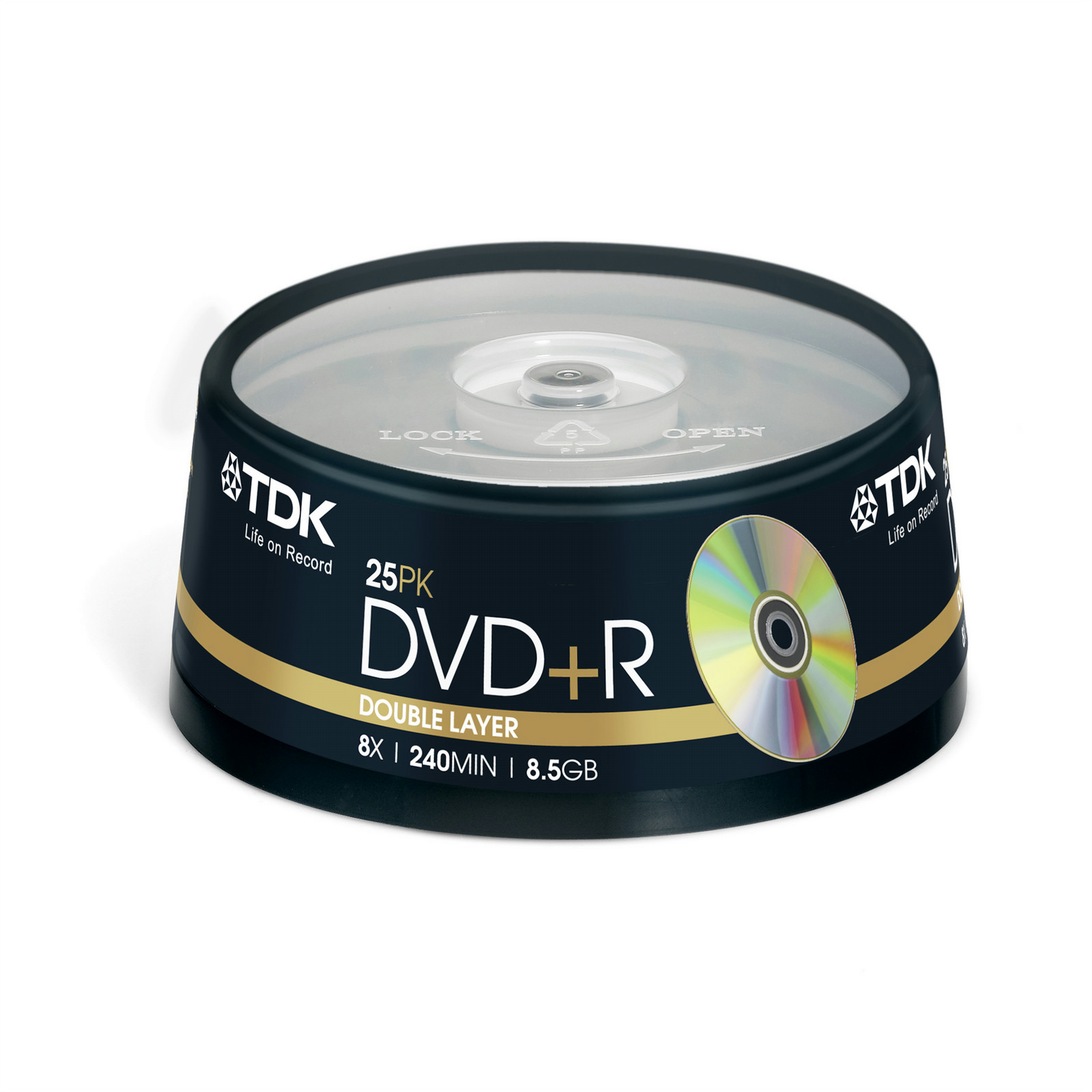 TDK Life on Record Double Layer DVD media features 8.5GB capacity and can store nearly twice as much data as standard recordable DVDs. TDK Double Layer DVD recording media makes it possible to record a full-length feature on a single disc without using compression that could degrade the video and sound quality. Store up to 12 hours of footage on a single disc, or up to three hours in high quality mode.