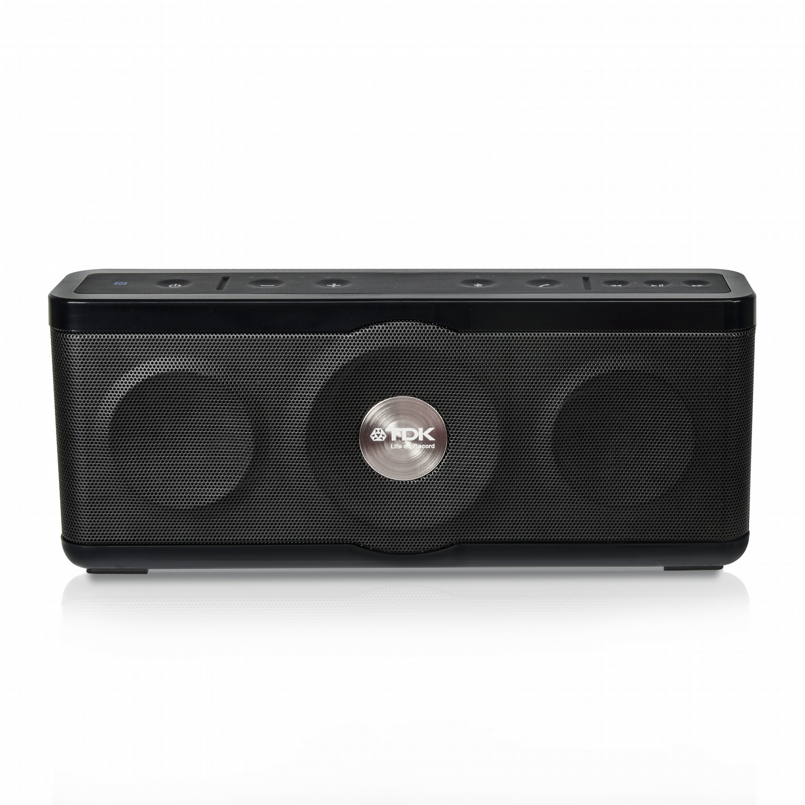 The TDK Life on Record TREK Max delivers the best in audio quality and functionality. The TREK Max offers a new standard in portable speakers while wrapped in a stylish and durable design. With wireless Bluetooth® streaming, this speaker lets you unplug your device and get a truly wireless experience without missing a beat. Bluetooth pairing is as easy as just a touch with NFC enabled Bluetooth devices. With built-in track control, the TREK Max allows you to switch music without the Bluetooth device nearby. The integrated microphone provides speakerphone functionality and the auxiliary input makes the TREK Max compatible with almost any device. Compact and rugged, the TREK Max is built to move, whether indoors or outdoors.