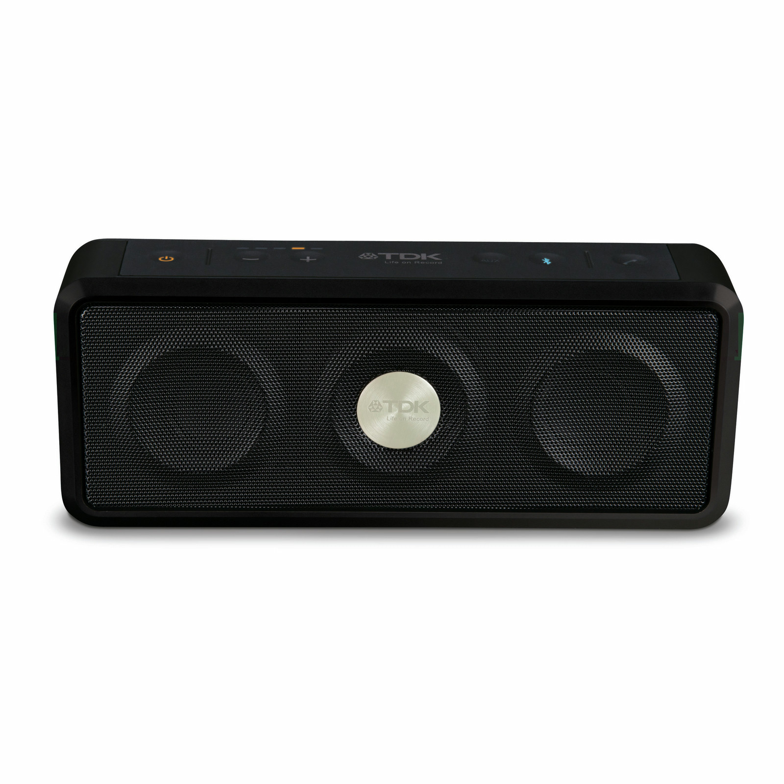 Delivering the best in audio quality and functionality, the TDK Life on Record Wireless Weatherproof Speaker with Bluetooth® wireless technology offers the new standard in portable speakers wrapped in a stylish and durable design. With wireless Bluetooth streaming, this speaker system lets you unplug your device and get a truly wireless experience without missing a beat. The built-in microphone provides speakerphone functionality, while the auxiliary input makes it compatible with almost any device. Compact and rugged, the TDK Life on Record Wireless Weatherproof Speaker system is built to move, no matter what the forecast.