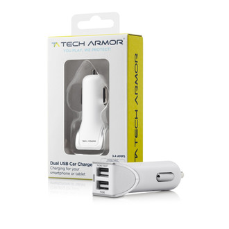Tech Armor PW-CC-2USB-2A-WHT. Charger type: Auto, Charger compatibility: Smartphone, Tablet, Power source type: Cigar lighter. Colour of product: White