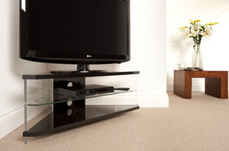 Air Corner is a new approach to the design of A/V furniture to reflect the appearance of the latest slim, light weight screens. The opticly clear side panels give the impression that the black shelves are 'floating' in the corner of your room, while providing a sturdy housing for all your A/V equipment.