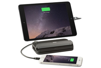 RC12000 is the most innovative and powerful MFI charger in the Recharge stable. With a premium quality 12000mAh Li-Polymer battery capable of recharging an iPhone 6s on average 5 times, the RC12000 features the ability to charge two USB devices simultaneously. The RC12000 also incorporates a clever charge stand that allows an iPhone, iPad, Tablet, or Smartphone to be positioned for easy hands free viewing. Charged ready to use with 2.4AMP fast charge capability, over heat, over load, over discharge, surge and short circuit protection, built in cable storage, complete with Lightning and Micro USB cables and a handy neoprene storage case the RC12000 is the most complete portable power solution.
