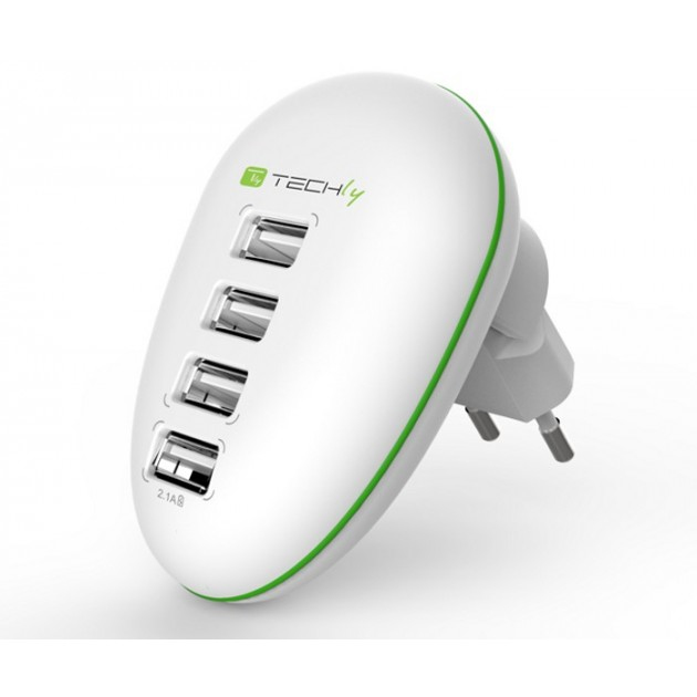 Techly 4-port USB Power Adapter 2.5A Smartphone / Tablet White IPW-USB-4PWH. Charger type: Indoor, Charger compatibility: Universal, Power source type: AC. Colour of product: White. Output voltage: 5 V, AC adapter output current: 2.5 A, Maximum power: 12.5 W. Weight: 230 g