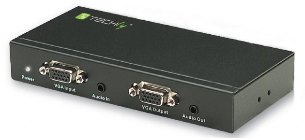 Techly Extender / Splitter VGA Cat5e/6 IDATA EX-DL252. Video port type: VGA, Cable types supported: Cat5e, Cat6. Supported graphics resolutions: 1280 x 960, 1600 x 900, 1024 x 768 (XGA), 1280 x 1024 (SXGA), 1280 x 720 (HD 720), 1280 x 768 (WXGA), Maximum resolution: 1920 x 1200 pixels. Colour of product: Black. Dimensions (WxDxH): 145 x 70 x 25 mm, Weight: 894 g
