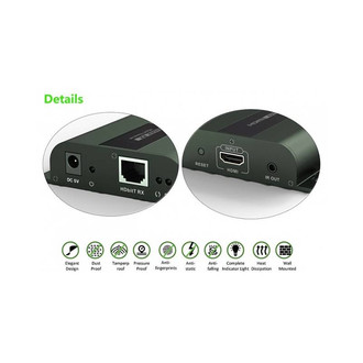 The HDMI extender HDbitT offers all the benefits of the latest transmission technology - HDbitT, allowing you to extend the HDMI audio / video signal with a resolution of 1080p 60Hz up to 120m using a single network cable. It supports IR signal transmission, to control media playback of the source device from the location where the display is located.