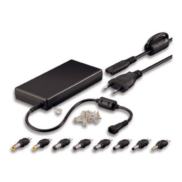 Techly Notebook AC Adapter 72W Adjustable 12/24 V IPW-NTS75WE. Input voltage: 110-240, Input frequency: 50/60, Output power: 72 W. Power supply type: Indoor, Purpose: Notebook, Power current type: AC-to-DC. Colour of product: Black. Width: 133 mm, Depth: 65 mm, Height: 20 mm. Cables included: AC