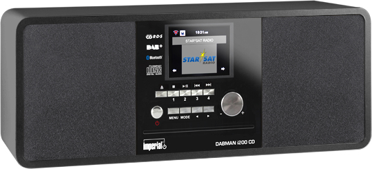 Telestar IMPERIAL DABMAN i200 CD. Tuner type: Digital, Supported radio bands: DAB+, FM, UKW. Optical drive type: Player, Disc types supported: CD. RMS rated power: 20 W, Tweeter size: 7.62 cm (3"), Tweeter size: 7.62 cm. Audio formats supported: MP3, WAV. Display type: LCD