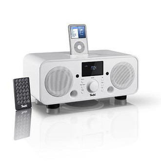 Teufel iTeufel Radio v2. Headphone connectivity: 3.5 mm. Apple docking compatibility: iPod. Colour of product: White. Dimensions (WxDxH): 340 x 165 x 145 mm