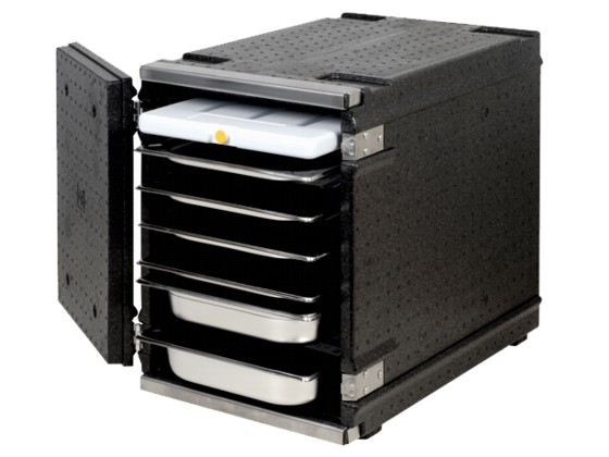 Thermowelt Thermobox Frontlader 1/1 Gastronorm. Colour of product: Black. Width: 635 mm, Depth: 410 mm, Height: 550 mm. Quantity per pack: 1 pc(s)