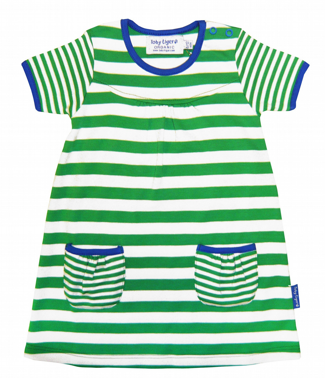 Organic Cotton Green & White Stripe Short Sleeve T-Shirt Dress, Size 104 cm, 3-4 Y