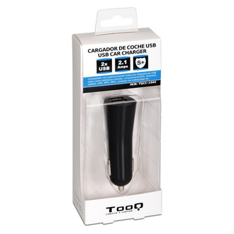 TooQ TQCC-1502. Charger type: Auto, Charger compatibility: Universal, Power source type: Cigar lighter. Colour of product: Black. Input voltage: 12 - 24, Output voltage: 5 V, AC adapter output current: 2.1 A
