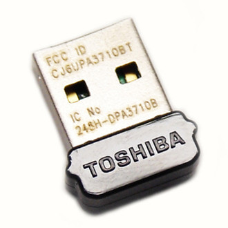 The Toshiba Bluetooth USB Nano Adapter adds Bluetooth connectivity to your PC enabling wireless communication with a wide variety of Bluetooth devices. The nano adapter is drastically smaller than other USB adapters and can be left in the USB port of your computer.