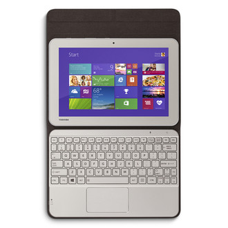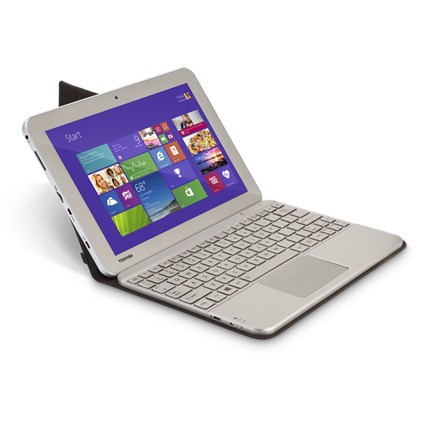 Meet the Bluetooth keyboard that was designed to complement the Encore 2 tablet. Weighing under one pound and just about a 1/2-inch thin, this Bluetooth® Keyboard also has a unique cover that folds into a tablet stand when open, and hugs the tablet within while closed. The Toshiba Bluetooth Keyboard Cover for Encore 2 includes a touchpad and also features 83 raised tile keys, including 15 special Windows-optimized hotkeys for quick access to special functions.
