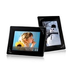 Combining a lustrous gloss-black finish with elegant inlaid rhinestones and an intuitive LED lighted touch-sensitive menu interface, Transcend’s PF810 is the perfect addition to any room or office. Its bright new 8-inch 800x600 (4:3) color TFT LCD panel and 2GB of built-in flash memory makes sure users can easily display the entire photo collection in astonishing clarity and detail without using a memory card.