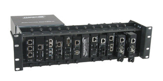 - Supports any combination of single wide, 12VDC powered, Transition Networks media converters