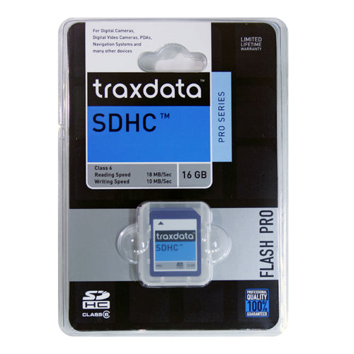 Traxdata SDHC Class 6 memory cards are ideal for professional photographers who demand a reliable SDHC memory product with high speed and high capacity for taking photos or full motion videos. Rated Class 6 for data transfer speed, it is the highest speed class currently available, and means data can be written at a minimum speed of 6MB per second, perfect for high-definition video and images.