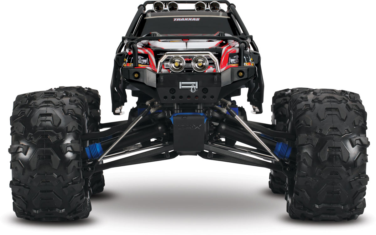Summit gets its spin from the largest motor of any electric monster truck, the Titan® 775. This massive mill is equipped with a fan-cooled armature for nonstop off-road adventure, and an extra wrap of steel around the can for maximum magnetic field strength—that means more torque to tame the trail and conquer any climb. Designed by Traxxas, the EVX-2 features three drive profiles, thermal shutdown protection, low-voltage detection for compatibility with LiPo battery packs, and patented Traxxas high-current battery connectors. Throttle control comes from an EVX-2™ electronic speed control, a heavy-duty powerhouse that can handle up to 16.8 volts to give Summit extreme trail-conquering torque. And if that trail is wet, muddy or even covered in snow, it's no problem. Waterproof electronics let Summit operate worry-free in conditions that sideline other monster trucks.