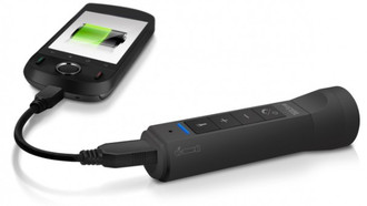 Hands-free speakerphone, flashlight, stereo speakers and USB charger in one.