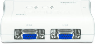 -2-Port KVM switch in compact size design with 2 sets of 3 to 1 KVM Cables.