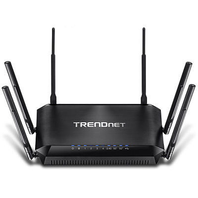 TRENDnet’s AC3200 extreme performance Tri Band Wireless Router, model TEW-828DRU, produces three concurrent wireless networks—two separate 1300 Mbps Wireless AC networks and a 600 Mbps Wireless N network. Smart Connect technology automatically groups slower and faster AC devices to separate WiFi AC bands. High performance Gigabit ports, a 1 GHz dual core processor, six high gain antennas, high power amplifiers, and a SuperSpeed USB 3.0 share port deliver extraordinary networking speed and range.