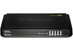The 4-Port VPN Router, model TW100-BRV214, manages up to 80 Virtual Private Network (VPN) tunnels. IPSec, L2TP, and PPTP VPN pass-through sessions are supported and a configurable firewall ensures the highest level of security.