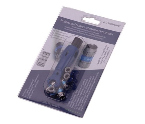 F-Self Instal Tool Kit, F-56 5.1 For easy, simple and precise installations. The pocket tool and the Self-Install connectors are the perfect companions for home installations. The pocket installer makes the cable preparation much easier and precise, while the spanner can be used for proper tightening. The connector is pushed on the cable without using any tool. It is automatically fastening to the cable as the connector is installed. Easy to push on - but impossible to pull off.