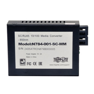 Tripp Lite's N784-001-SC-MM 10/100 to Multimode Media Converter ( RJ45 to SC ) is an economical way to extend the distance of network nodes up to 550 Meters by converting Cat5e UTP cables to Multimode Fiber Optic. The Media Converter features automatic MDI/MDI-X configuration, and the UTP port senses the network speed automatically. Auto-detects half or full duplex operation on the fiber port. Power supplied by small form factor AC adapter.