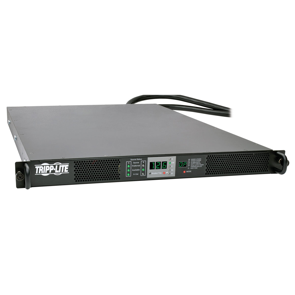 12.6kW 3-Phase 208V Monitored Rack ATS, 1U, 2 Hubbell 50A CS8365C, 6 ft. Cords, (Vertical PDU required, Sold Separate)