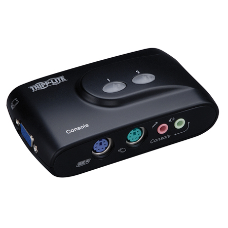 The B004-VPA2-K-R is a 2-port Compact PS/2 KVM Switch with optional audio and microphone switching function. It allows you to access, control, boot and reboot two PS/2-enabled computers from a single console (keyboard, monitor and mouse). The independent audio/mic switching function allows an uninterrupted audio experience - you can continue listening to audio even when you switch to the other computer. Compatible with all major operating systems.