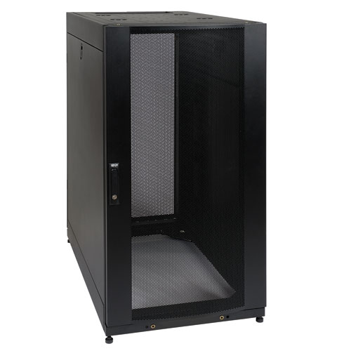 SmartRack enclosures are designed for secure, high density server and networking applications in IT environments. Designed with provisions to integrate cooling, power distribution and cable management, SmartRack enclosures make ideal homes for mission-critical equipment. Vendor-neutral square hole/cage nut mounting for guaranteed compatibility with all EIA-310-D compliant 19" equipment. Enclosures ship fully assembled for rapid deployment and roll into place on heavy-duty casters. Toolless mounting slots allow quick installation of PDUs and vertical cable managers. Adjustable mounting rails include an easy-view depth index to eliminate time-consuming measurements. Lightweight modular doors and side panels provide safe, convenient service access. Integrated baying tabs facilitate combining enclosures in rows for standard data center baying applications. SmartRack enclosures hold up to 3000 lbs and support cooling, cable management, power distribution and monitoring features that keep critical servers and network equipment operating nonstop. Perforated doors permit massive front to rear airflow that exceeds servers manufacturer requirements. Enclosures are fully compatible with hot-aisle / cold-aisle data center configurations.