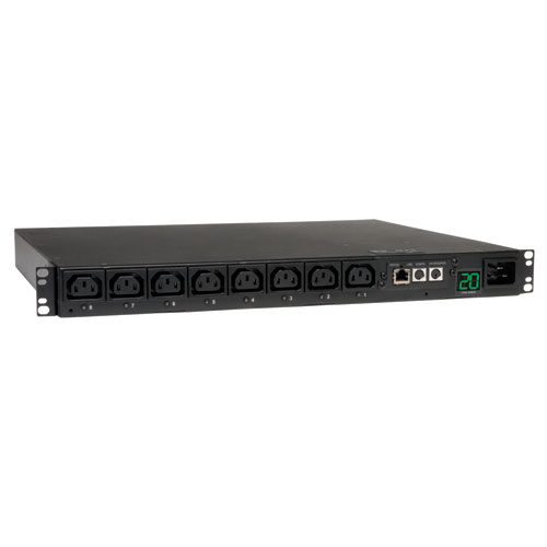 3.2-3.8kW Single-Phase Switched PDU, 200-240V Outlets (8 C13), C20 / L6-20P input, 8.5ft Cord, 1U Rack-Mount