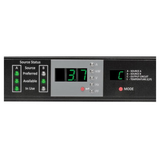 Built-in Ethernet network interface allows remote access to the PDU for power monitoring, configuration, control and notifications via web browser, SSH, telnet or SNMP. Provides real-time load/current data with billing-grade accuracy (+/- 1 percent). Tiered access privileges allow both an administrator and a guest to log in. Automated alerts help prevent overloads, power loss and downtime. Digital display with LEDs indicates power availability, voltage, input status for both power sources, output load and power factor, as well as temperature and humidity conditions with the optional ENVIROSENSE module (sold separately).