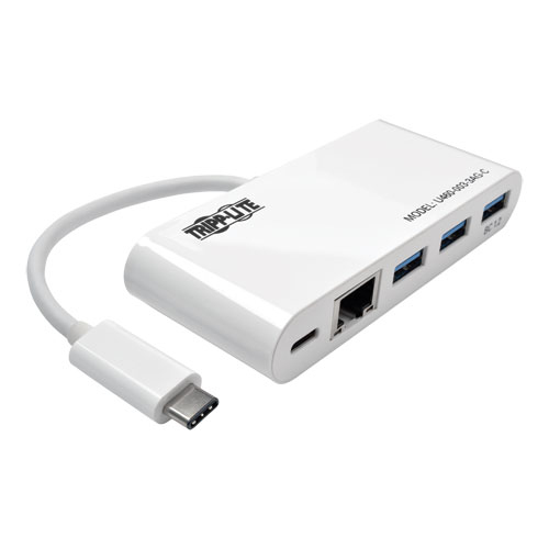 3-Port USB 3.1 Gen 1 Portable Hub, USB Type-C (USB-C) to (x3) USB-A, USB-C Charging Port & Gigabit Ethernet Port