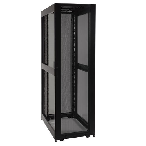 SmartRack enclosures are designed for secure, high density server and networking applications in IT environments. Designed with provisions to integrate cooling, power distribution and cable management, SmartRack enclosures make ideal homes for mission-critical equipment. Vendor-neutral square hole/cage nut mounting for guaranteed compatibility with all EIA-310-D compliant 19 equipment. Enclosures ship fully assembled for rapid deployment and roll into place on heavy-duty casters. Toolless mounting slots allow quick installation of PDUs and vertical cable managers. Adjustable mounting rails include an easy-view depth index to eliminate time-consuming measurements. Lightweight modular doors provide safe, convenient service access. Integrated baying tabs facilitate combining enclosures in rows for standard data center baying applications. SmartRack enclosures hold up to 3000 lbs. and support cooling, cable management, power distribution and monitoring features that keep critical servers and network equipment operating nonstop. Perforated doors permit massive front to rear airflow that exceeds servers manufacturer requirements. Enclosures are fully compatible with hot-aisle / cold-aisle data center configurations.