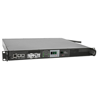The PDUMNH30HVAT 5.8kW Single-Phase 208/240V ATS/Monitored PDU provides remote power monitoring and enables redundant power for network devices with non-redundant power supply configurations. Ideal for data centers and server rooms, it mounts in 1U of space in EIA-standard 19-inch racks and features one L6-30R outlet—perfect for connecting a single device or a 0U 208/240V PDU with an L6-30P plug. Dual 3.05 m (10-ft.) input cords with L6-30P plugs connect to separate primary and secondary single-phase power sources. The PDU constantly evaluates the power quality of both input sources. Dynamic solid-state (TRIAC) automatic transfer switching allows the PDU to switch to the secondary source within 1–5 milliseconds should the primary source fail or become unstable to ensure your connected equipment operates without interruption. Built-in Ethernet network interface allows remote access to the PDU for power monitoring, configuration, control and notifications via web browser, SSH, telnet or SNMP. Provides real-time load/current data with billing-grade accuracy (+/- 1 percent). Tiered access privileges allow both an administrator and a guest to log in. Automated alerts help prevent accidental overloads, power loss and downtime. Digital display indicates power availability, voltage, source A/B input status, output load and power factor, as well as temperature and humidity conditions with the optional ENVIROSENSE module (sold separately).
