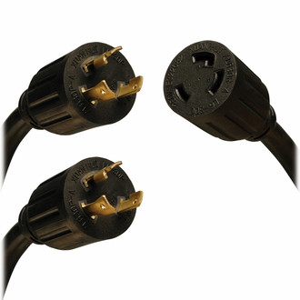 - Dual 3.05 m (10-ft.) input cords with L6-30P plugs connect to separate primary and secondary single-phase power sources