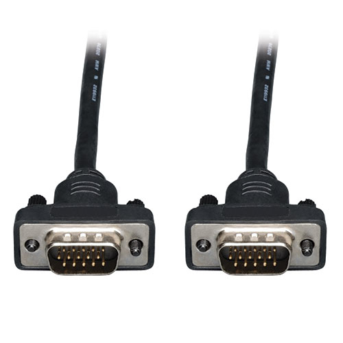 Tripp Lite's, PVC, SVGA / VGA Compact monitor replacement cable, features a 40% reduced diameter cable, and smaller molded connectors. The mini-coax (RGB) and paired video wire construction delivers superior video signal quality, up to 2048x1536. Nickel plated connectors and gold plated copper contacts ensure excellent conductivity. Double shielding (foil and braid) provides maximum EMI/RFI protection. Both high density DB15 male connectors are molded and have integral strain relief to ensure long life.