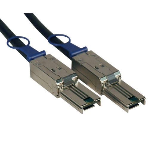 Tripp Lite's S524-03M External SAS cable features SFF-8088 to SFF-8088 mini-SAS connectors with heavy- duty metal backshells. This 4-channel Infiniband cable is constructed with high-performance cable, which features individually shielded parallel pairs, double EMI/RFI shielding, and 6.0 Gigabytes per second performance.