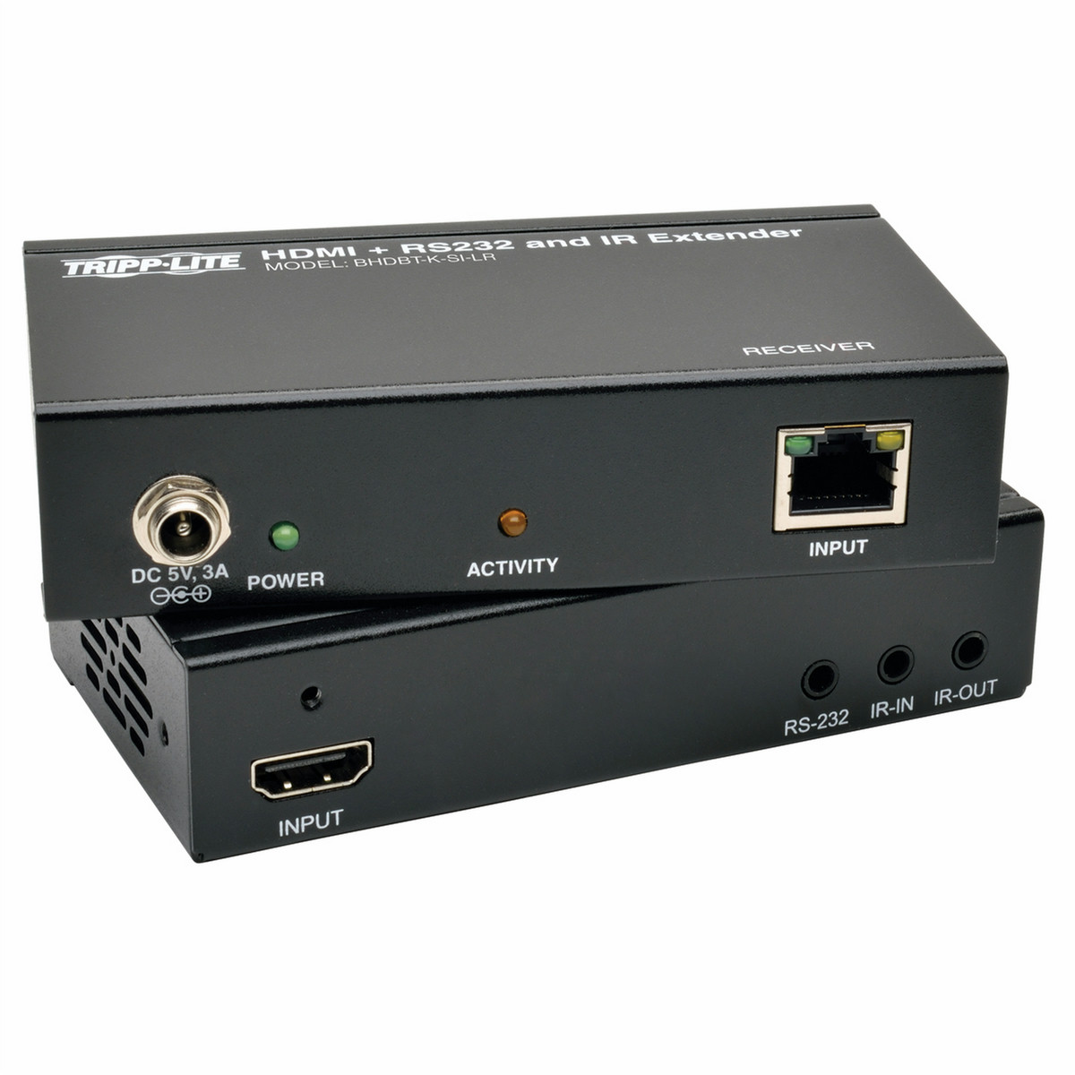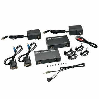 The BHDBT-K-SI-LR HDBaseT Extender Kit allows you to transmit HDMI audio and video, RS-232 serial and IR Remote Control signals up to 328 feet (100 m) over a single Cat5e/6/6a cable. This includes 1920 x 1080 (1080p) signals @ 60 Hz and even Ultra High Definition (UHD) 3840 x 2160 (4K x 2K) video signals. Add up to five Tripp Lite BHDBT-TR-SI-LR transceivers (sold separately) between the transmitter and receiver units to further expand the range up to 2,000 feet (600 m) with a monitor connected via HDMI port to each transceiver. You can also control RS-232 serial devices, such as touchscreen displays or scanners, at baud rates up to 115 Kbps. The BHDBT-K-SI-LR’s 2-way IR Remote Control feature (@ 39 KHz) lets you control your Blu-ray player using its remote when at the remote monitor or control your remote monitor using its remote when at the Blu-ray player. Locking HDMI ports (ideal for use with Tripp Lite’s High-Speed HDMI cables with locking connectors, such as P569-006-LOCK) on both the transmitter and receiver prevent cables from coming loose or undone, ensuring an intact signal. The BHDBT-K-SI-LR supports 7.1-channel surround sound, DTS-HD and Dolby TrueHD audio, as well as 3D video, EDID and HDCP. Included mounting hardware lets you attach each unit to a wall, rack or pole. There’s no software to download or install, and you can have the BHDBT-K-SI-LR Extender Kit set up and ready to go quickly.