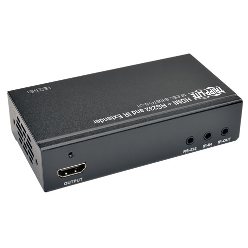 The BHDBT-R-SI-LR HDBaseT Extender Receiver works in tandem with the Tripp Lite BHDBT-Series matrix transmitter in your HDBaseT installation to extend uncompressed HDMI video and audio, RS-232 serial and IR remote control signals.