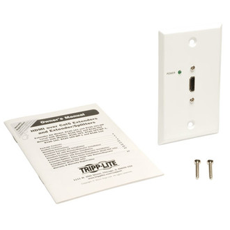 The B126-1P0-WP-1 HDMI over Cat5/Cat6 Passive Remote Receiver works with Tripp Lite’s B126-002 or B126-004 transmitter to extend an HDMI signal to a projector, monitor or television. It’s ideal for digital signs, trade shows, presentations, classrooms, churches, retail settings and other applications where the video source is located farther than conventional cables allow. The receiver uses HDMI cable (see Tripp Lite’s P568-Series) to connect to the monitor and a single Cat5e/6 cable to receive the signal from the transmitter (for best results, use 24 AWG solid-wire Cat5e/6 cable, such as Tripp Lite’s N202-Series). No 110 punchdown connection is required. The B126-1P0-WP-1 can extend a 1080i (60 Hz) signal up to 100 feet (30.5 m) or a 1080p (60 Hz) signal up to 50 feet (15.2 m) with a single Cat5e/6 cable between it and the transmitter. No external power is needed. In addition to crystal-clear video, the B126-1P0-WP-1 delivers full, rich stereo and 7.1-channel surround sound (multi-channel or PCM) audio when paired with a B126-002 or B126-004 transmitter unit. Supports 24-bit True Color (8 bits per channel) and HDCP compatibility. Easy to set up with no software or drivers to install. Works with all operating systems and HDMI video sources.