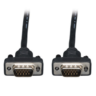 Tripp Lite's 6-ft, PVC, SVGA / VGA Compact monitor replacement cable, features a 40% reduced diameter cable, and smaller molded connectors. The mini-coax (RGB) and paired video wire construction delivers superior video signal quality, up to 2048x1536. Nickel plated connectors and gold plated copper contacts ensure excellent conductivity. Double shielding (foil and braid) provides maximum EMI/RFI protection. Both high density DB15 male connectors are molded and have integral strain relief to ensure long life.