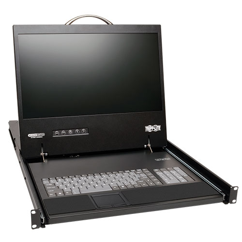 Tripp Lite's 8-Port NetCommander Cat5 IP Console KVM switch is the optimal solution for controlling multiple computers from either a 19" LCD display console or a remote location. Simultaneous support is provided for up to one local and one remote user, allowing each to access a different port on the KVM at the same time. A single unit occupies a mere 1U of rack space, yet can control up to 8 directly connected computers. Each computer/server can be located up to 100 ft. from the KVM switch using Cat5e/6 cabling, with support for video resolutions up to 1920 x 1080 @ 60Hz.A full-screen graphical OSD with multi-level authentication (Administrator and User) allows you to quickly and efficiently manage your installation. Allows for remote authentication via RADIUS and LDAP/S, and supports both IPv4 and IPv6. The OSD includes a range of settings for system configuration that allow you to add accounts, customize account access, install a SSL certificate, backup and restore system settings, upgrade firmware, and more. Accessing the connected computers is a breeze; a wide range of video and mouse sync settings ensure optimal remote session performance in any situation. In addition to ports for computers/servers, two serial ports are provided for the connection and control of serial manageable devices such as PDU's, firewalls, and routers. IP PDU's can be added as devices to be controlled by the KVM, and individual KVM ports can be assigned to a PDU port, giving you the ability to Power Cycle or Power Off/On the computer/server connected to that port. Additionally, Virtual Media allows an .iso file located in a Shared folder of a SAMBA or NFS server to be mounted to a Target Server and accessed as if it were directly stored on it. Virtual Media data transfer rates up to 12Mbps (B078-101-USB2 required) are supported. A B078-101-USB-1 can be used to provide Virtual Media support, but only at speeds up to 1Mbps.Other features include dual ethernet ports, SNMP messaging, and a log that records the events that take place on the installation. Constructed of heavy-duty steel housing. All rackmount hardware is included, and is designed for easy, one person installation. Fits into any rack from 27" to 42" deep. 2-post rackmounting available using Tripp Lite's B019-000. Compliant with the Federal Trade Agreements Act (TAA) for GSA Schedule Purchases.