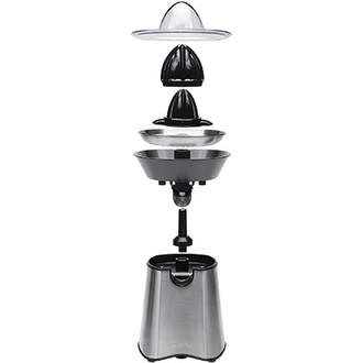 Stylish juicer made of stainless steel. Features a powerful and silent motor of 60 W. The juicer can be taken apart quickly: easy-to-clean. Including 2 juicer heads suitable for all citrus fruits and removable stainless steel strainer.