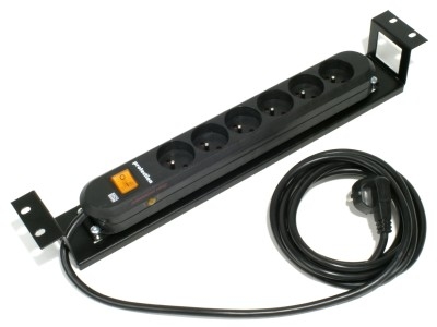 19” Distribution panel 6x 230V – 3m, with holder 1,5U, RAL 9005