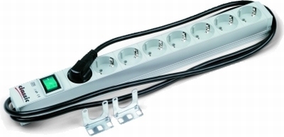 19“ power distribution panel & sockets with switch, SCHUKO/GERMAN standard, 8 outlets, 2m lead cable