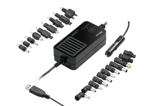 - Compact 130 Watt universal notebook power adapter for use in car with connection to charge your iPod or mobile phone.