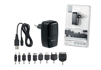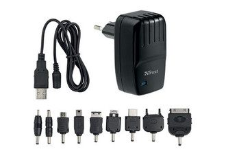 Smartphone Home Charger w/ Cable, 9 Tips, USB, Black