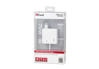 Works with virtually any 65/70W laptops. For use with Acer, Asus, Compaq, Dell, Fujitsu, HP, IBM, Lenovo, Packard Bell, Samsung, Sony and Toshiba; connectors included. Attached power plug: less cables, less hassle. Compact; easy to take with you. 2.5m cable length.