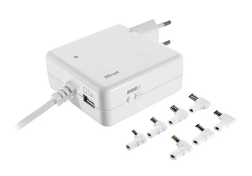 Plug-in 70W universal laptop charger with USB port to charge your tablet or smartphone